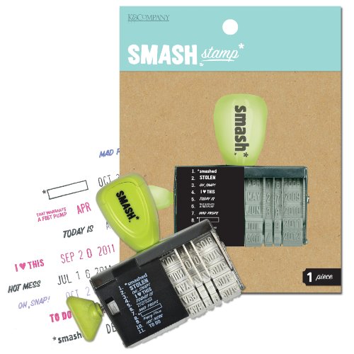 This is the "unscrapbook" for the person who doesn't have time or thinks they aren't creative. Great way to keep track of your life, remember funny things, inspirations quotes, and project ideas. "Live it up, glue it down, and smash it in." K&CompanySmash Stamp lets you add dates and sayings in an instant. Includes months, dates, years, and 11 graphics.